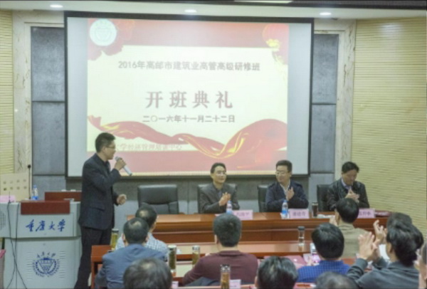 重慶大學(xué)繼續(xù)教育學(xué)院副院長(zhǎng)馮清平介紹了重慶大學(xué)的發(fā)展歷程、辦學(xué)理念、治學(xué)思想和學(xué)術(shù)地位,對(duì)繼續(xù)教育學(xué)院學(xué)科以及培訓(xùn)建筑業(yè)企業(yè)高層管理人員的工作情況作了說(shuō)明。潘建奇副市長(zhǎng)分析了我市建筑業(yè)企業(yè)面臨的新形勢(shì),闡述了本次在重慶大學(xué)舉辦筑業(yè)企業(yè)高層管理人員專(zhuān)題研修班的重要意義。