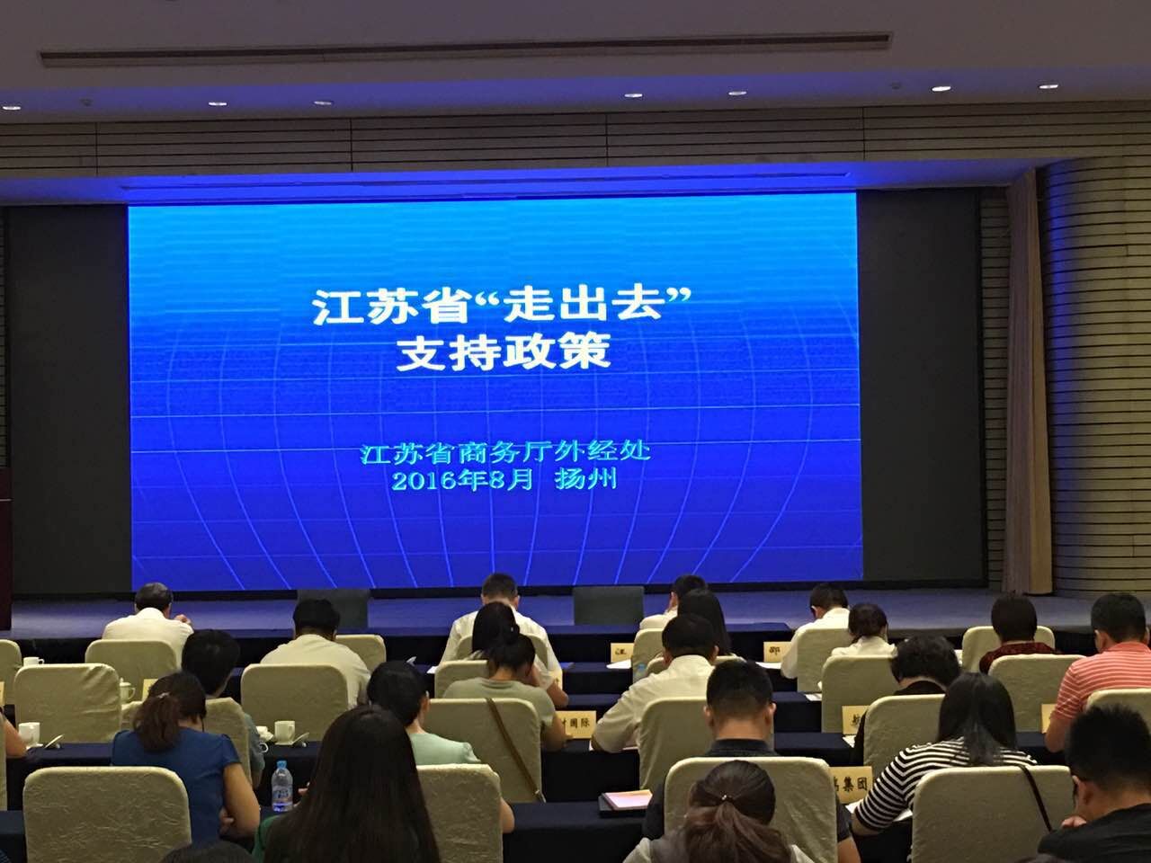 近日,由省商務廳組織中國出口信用保險公司江蘇分公司、省金融辦、省財政廳、省建行共同舉辦主題為《發揮信保作用 服務“一帶一路”》的“走出去”全省首場政策發布會在揚州迎賓館召開。全省60多家優質外經企業參加,我公司作為新批外經資質企業參加此次會議。