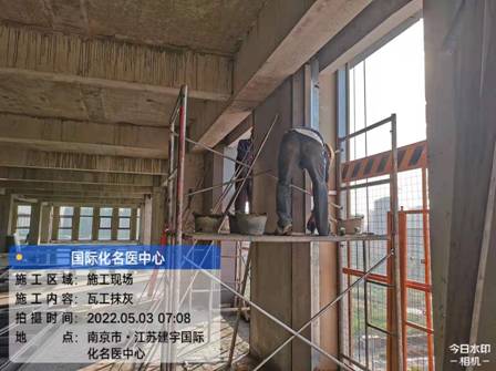 南京分公司承建的國際化名醫中心項目目前正推進室內二次結構抹灰和外幕墻掃尾施工。疫情期間項目的一些主材和人員進場雖然受到了一定的影響,但項目部依然做好多方聯系、協調人員,確保人員和材料都得以陸續進場。“五一”假期,項目部的所有人員依然堅守工作崗位,盡職盡責,在做好疫情防控、揚塵管控的前提下,保質保量的完成各項工作。