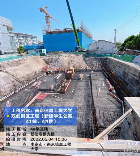 南京信息工程大學雙創街區工程是EPC項目,涵蓋了給排水、暖通、電氣、消防、智能化、強配電、幕墻、室外配套等眾多專業,項目要求高,工期短、任務重。目前41#樓棟已完成五層結構施工(共六層),二次結構也開始施工;4#樓已完成基礎鋼筋的綁扎。項目進展一切順利,相信用不了多久就會交上一份完美的答卷。