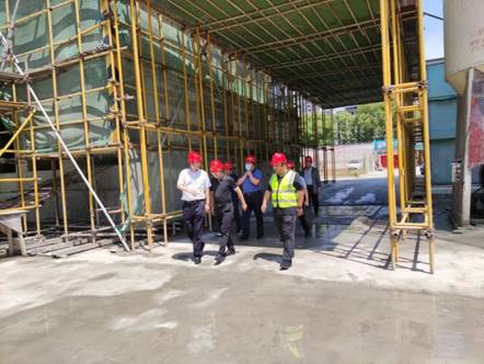楊斌副主任一行在董事長管民良的陪同下深入項目一線工地進行了細致了解,項目負責人柏甫彥向楊主任一行匯報了工程概況、項目建設進度、質量管理、安全管理、現場文明施工、揚塵管理、疫情常態化防控等情況。