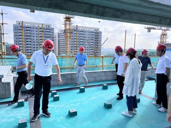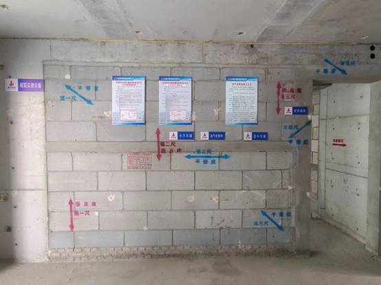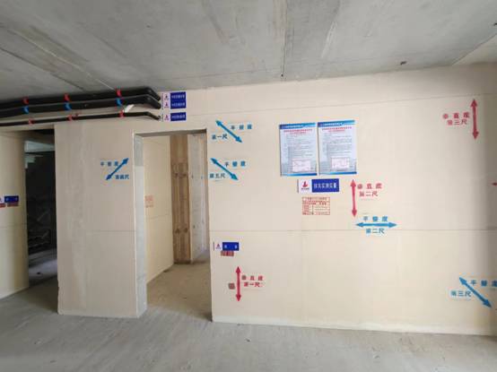 重點觀摩了12#樓的202、203 兩戶,其中202 為二次結構實測和工序展示,203 為不同戶型初裝修交付展示;13#樓經優化后的屋面做法展示;14#樓的203、204 兩戶,其中203 為一次結構實測展示和抹灰工序展示,204 為抹灰實測展示及不同戶型初裝修交付展示。