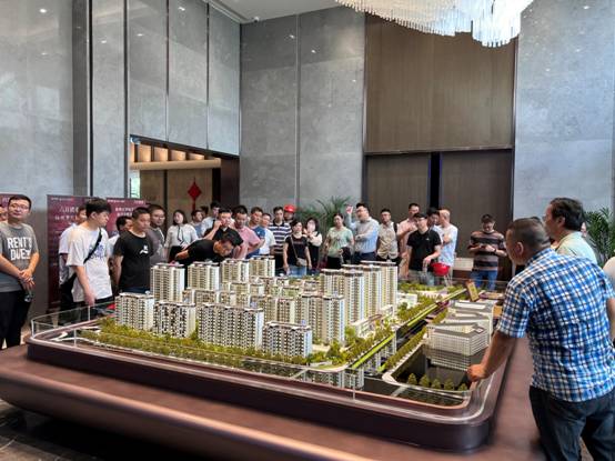 隨后,觀摩團一行參觀了天賦星辰項目售樓中心,在華麗大氣的銷售中心大廳沙盤區域,聽取了天賦星辰項目設計理念、區位優勢、推進速度、政策優惠等相關介紹。