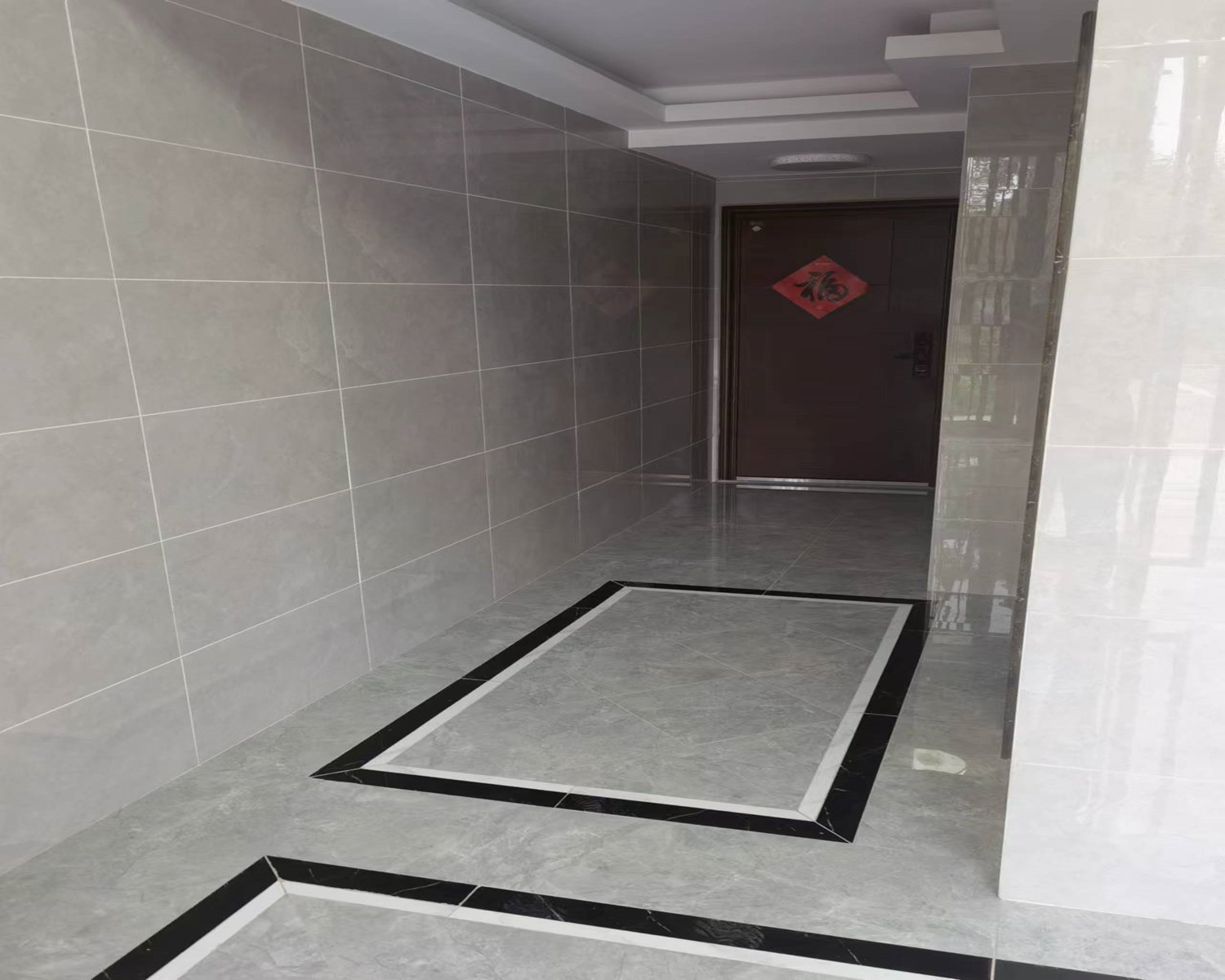 工藝:主要飾面磚全部為整磚排版、鋪貼,色澤一致、接縫均勻、周邊順直、無裂紋、無掉角,波導線和踢腳線與主要飾面磚對縫,轉角處波導45°(135°)角對縫,保證了工程質量、增加了美觀性,提升了業主入住后的體驗感。