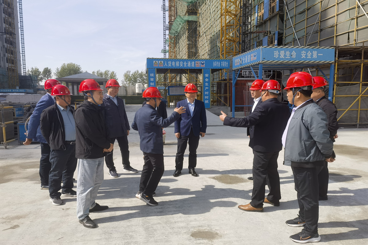 近日,高郵市建筑業(yè)協(xié)會(huì)會(huì)長張仲林、市住建局副局長王斌率隊(duì)蒞臨集團(tuán)揚(yáng)州分公司承建的錦麟世紀(jì)項(xiàng)目考察調(diào)研。集團(tuán)副總經(jīng)理兼揚(yáng)州分公司總經(jīng)理金大德、揚(yáng)州分公司副總經(jīng)理兼錦麟世紀(jì)項(xiàng)目負(fù)責(zé)人柏甫彥等陪同。