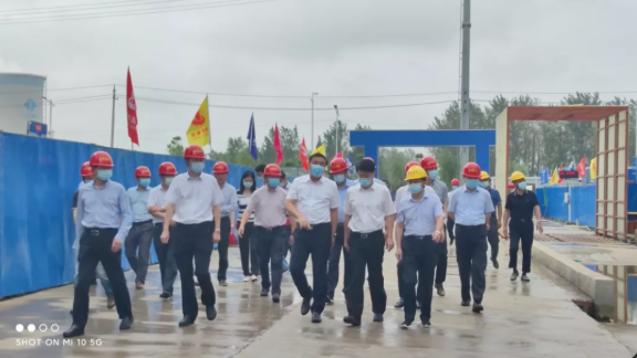 在視察中,董事長管民良向田醒民市長一行匯報了工程概況、項目建設進度、質(zhì)量管理、安全管理、現(xiàn)場文明施工、揚塵管理、疫情常態(tài)化防控等情況。隨后市領導深入項目一線工地進行了細致了解,對現(xiàn)場各項工作給予高度肯定。