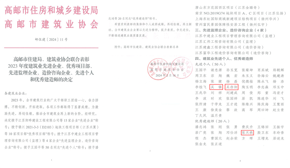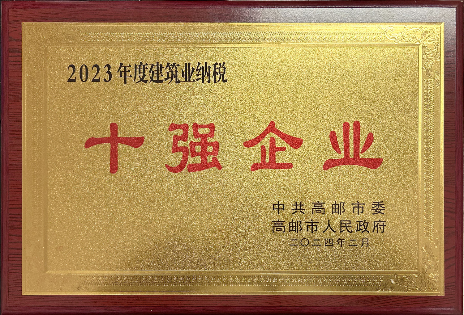 2023年,面對低迷的建筑市場,集團緊緊圍繞既定的戰略目標,攻堅克難、銳意進取。在經濟指標保持穩定的同時,創優奪牌捷報頻傳,轉型升級成效顯著。集團在高郵市納稅名列前茅,在揚州市納稅也取得了優異的成績,為揚州和高郵地方經濟發展做出了突出貢獻。