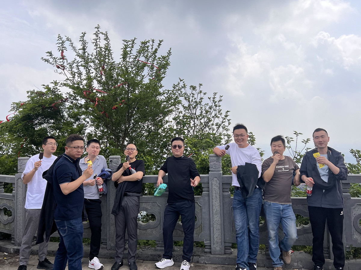 經(jīng)過近一個小時的攀登,大家終于到達(dá)了山頂。站在高處俯瞰四周,群山環(huán)繞,風(fēng)光無限。此刻,每個人都感受到了成功的喜悅與自豪。大家紛紛合影留念,記錄下這難忘的時刻。