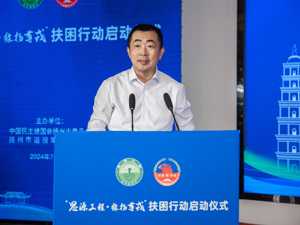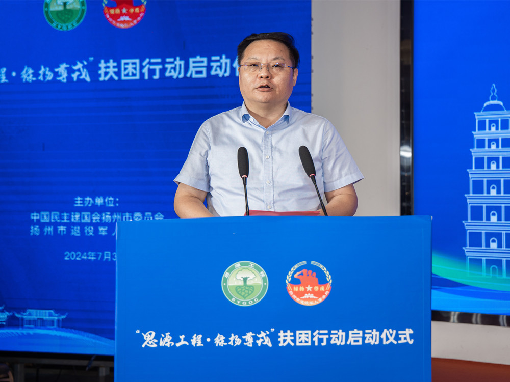 7月30日下午,由中國民主建國會揚州市委員會、揚州市退役軍人事務(wù)局聯(lián)合主辦的“思源工程·綠揚尊戎”扶困行動啟動儀式在郵舉行。揚州市委常委、統(tǒng)戰(zhàn)部部長丁四海和高郵市委書記張利、民建揚州市主委周啟泉等多位領(lǐng)導(dǎo)蒞臨現(xiàn)場,共同見證這一公益盛事。集團董事長管民良作為民建高郵支部副主委及這項公益活動的率先響應(yīng)企業(yè),應(yīng)邀出席活動并發(fā)表了公益倡議。