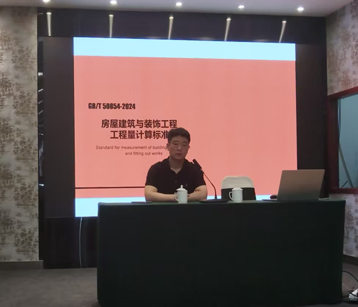 南京市場部負責人陳超主講有關 2024 專業計價標準的宣貫解讀。他不僅為參培人員深度解析了新計價標準出臺的重大意義、目的以及修訂原則,還對新計價標準的特點特征、主要變化以及使用過程中需要注意的問題進行了詳細講解,為參會人員如何準確、高效地使用新標準提供了極具針對性的指導意見。