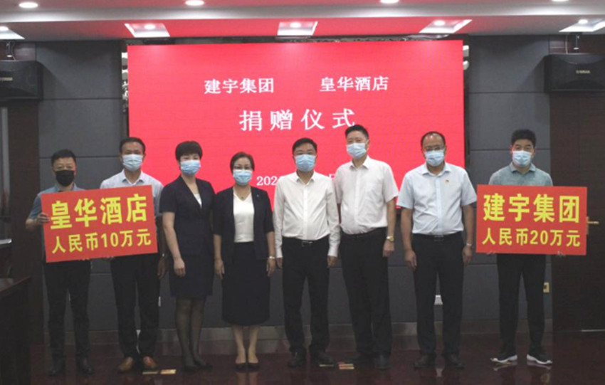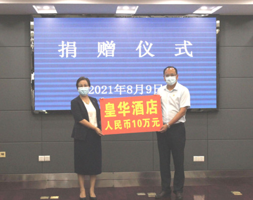 8月9日下午,在我市高郵鎮舉行的抗疫捐贈活動中,集團董事長管民良攜夫人皇華國際大酒店董事長王衛紅分別捐贈20萬元、10萬元,共計30萬元支援家鄉抗疫,高郵鎮史美山書記、周德全鎮長接受捐贈并對集團善舉表示感謝。