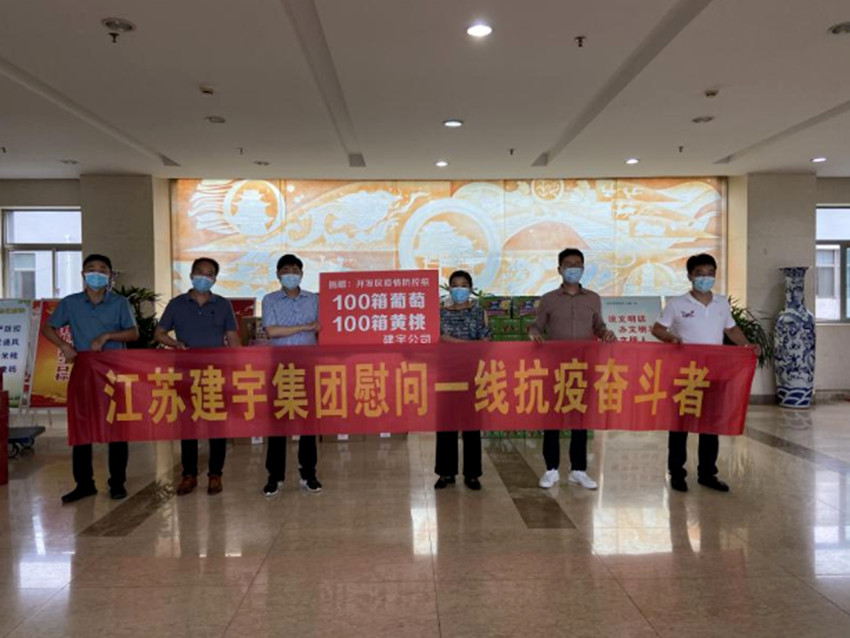 8月13日下午,集團總經理管民祥專程為高郵市開發區政府送去慰問品,為抗疫一線奮斗者送來精心挑選的葡萄和桃子等水果各100箱,為戰斗在一線的抗疫工作者送去營養關懷和一份暖暖的心意。